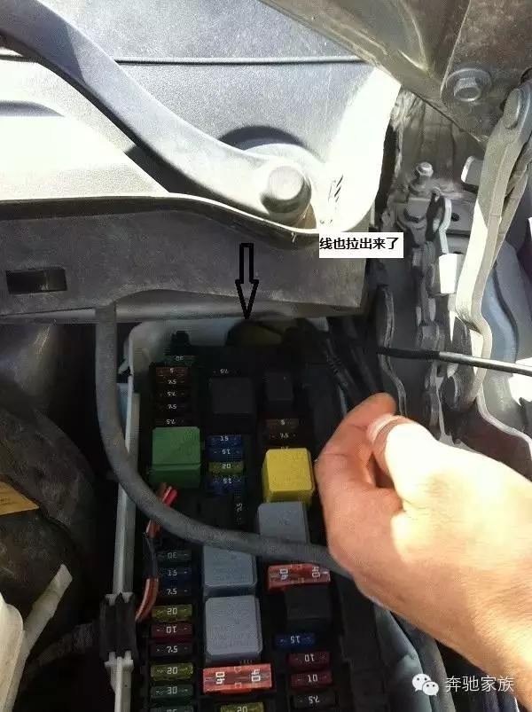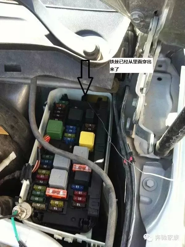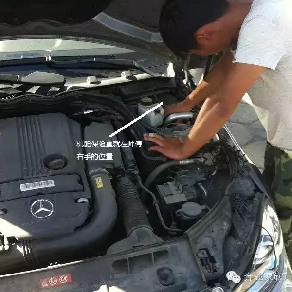 找到機(jī)艙保險(xiǎn)盒,正對(duì)車頭的右上角