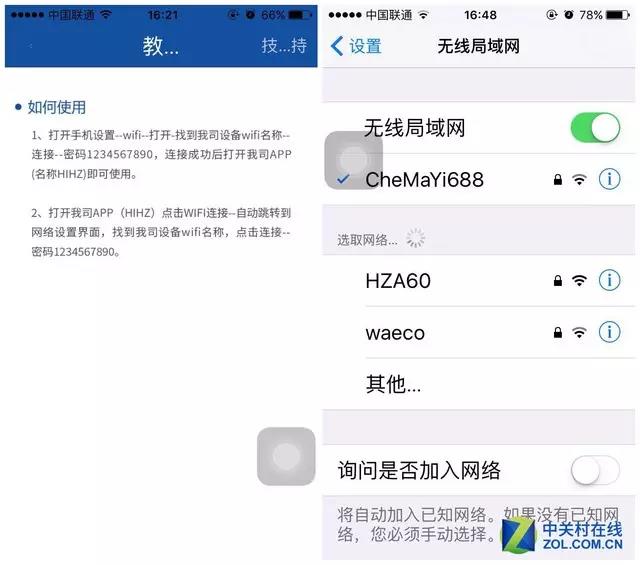 海圳的APP界面也是比較簡潔,很人性化,相當(dāng)于記錄儀的中控臺。APP的安裝步驟很簡單,打開wifi搜索海圳專車專用記錄儀發(fā)出的WiFi信號,連接即可,圖中的“HZA60”就是我們測試的這臺海圳產(chǎn)品的wifi名稱。海圳還列出了詳細的連接方式,可見用心。